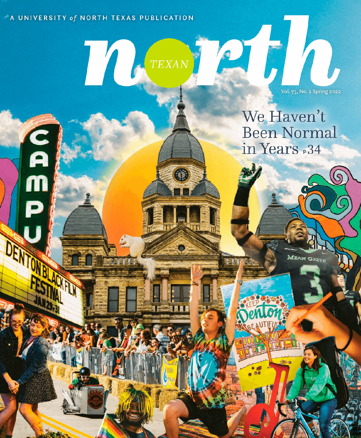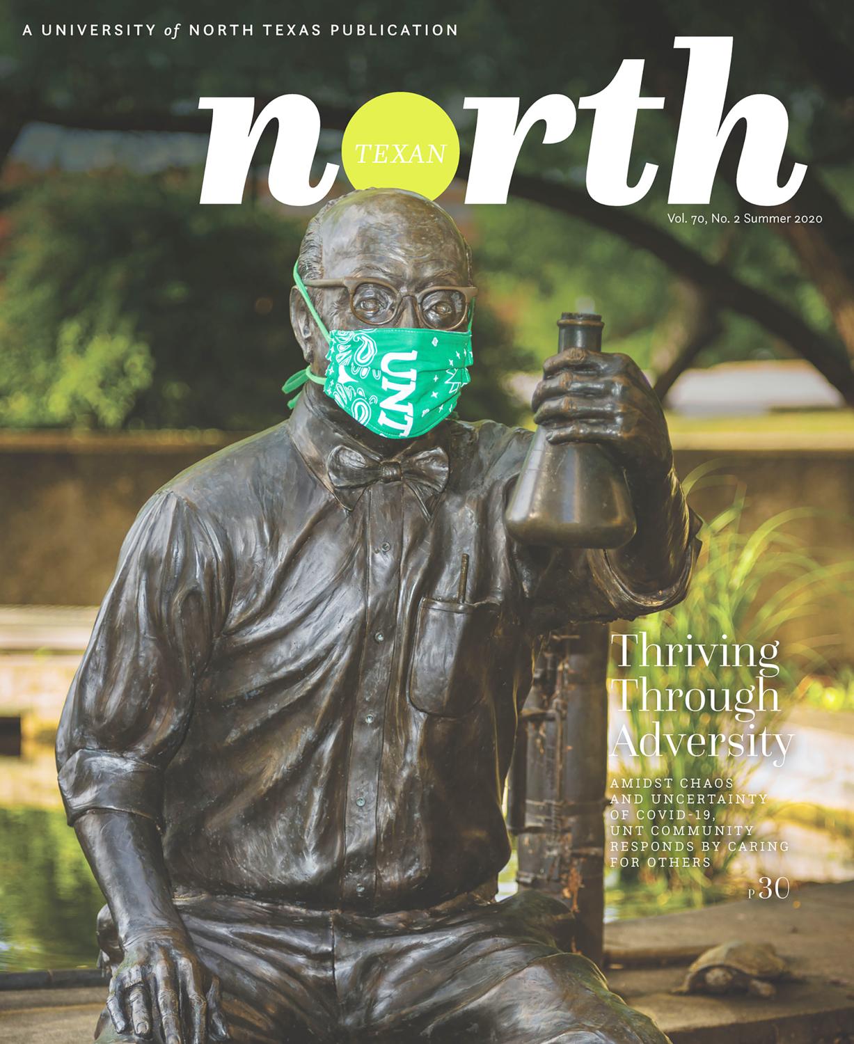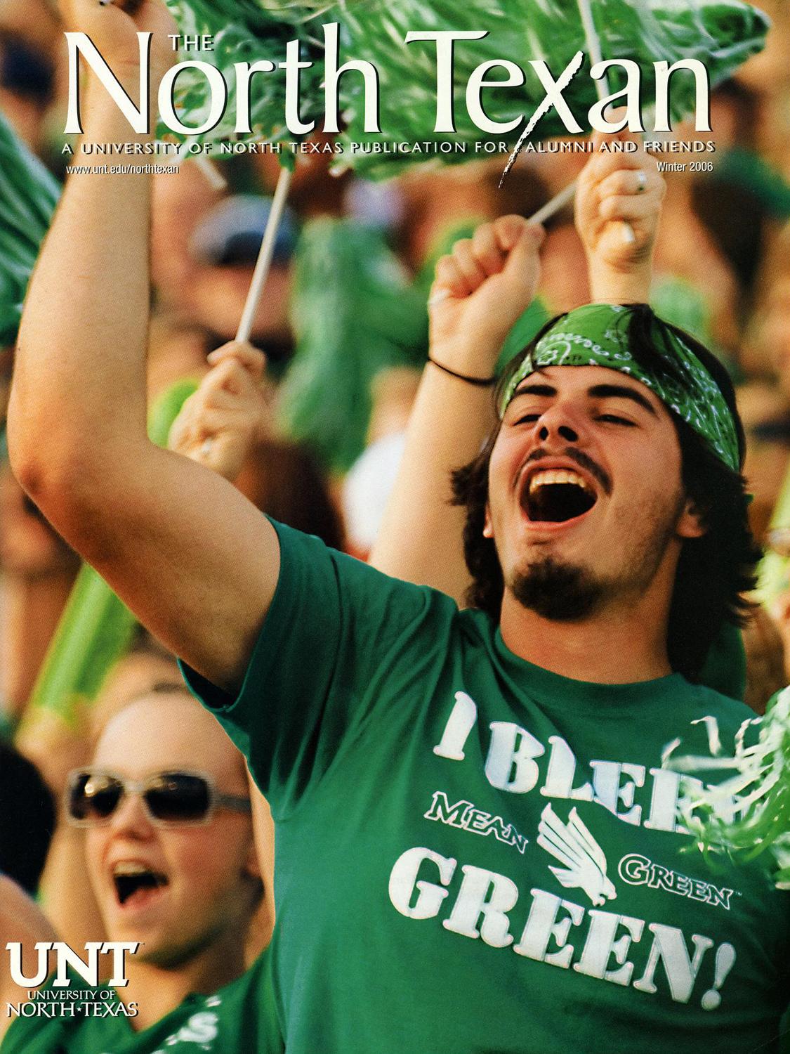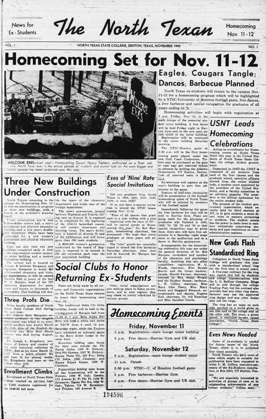 The North Texan turns 75 this fall, and as you can tell from the covers below, we've come a long way. Our first issue -- a four-page newspaper in November 1949 -- plugged a dance in the Harriss Gym and a football game with the Houston Cougars, which the Eagles won 28-23. The issue also reported a record enrollment of 5,262. (If you've lost count, we're now at nearly 47,000 students.) The North Texan's look may have changed down the corridor of years, but the mission remains the same: sharing with our UNT family the North Texas, North Texas we love.