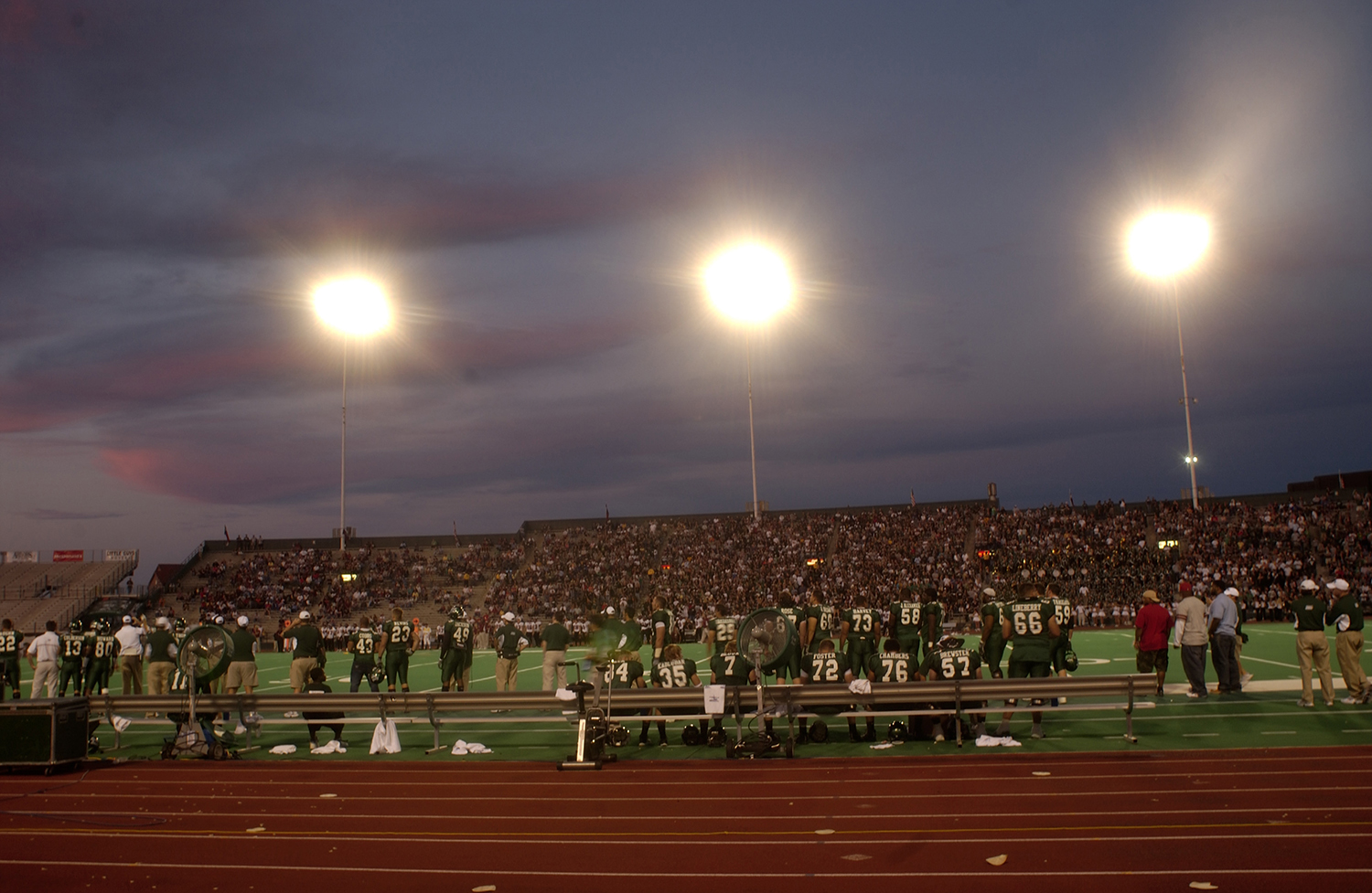 1991: Fouts Field served as the home of the Fighting Armadillos when the movie Necessary Roughness was filmed on campus. NFL athletes like Earl Campbell, Tony Dorsett, Herschel Walker and Ed “Too Tall” Jones had cameos as members of a prison team brought in for a scrimmage. The Armadillos were portrayed by actors including Scott Bakula, Jason Bateman, Sinbad and Kathy Ireland. (The stadium also appeared in The Jesse Owens Story in 1984.)